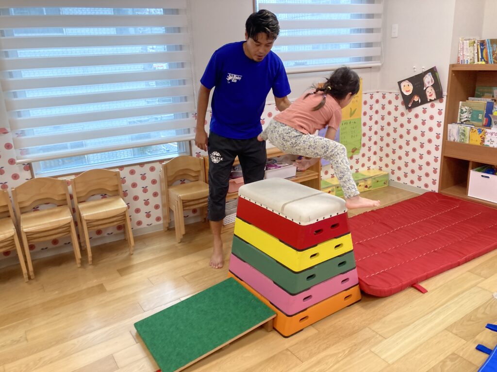 小さいながら4階には遊戯室(小型自由ホール)を、1階には隣接小型戸外スペースがあり、子ども達の活動範囲を広げ、遊び心を刺激する工夫があります。