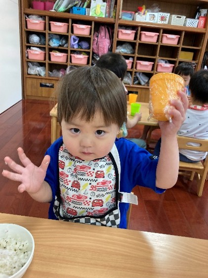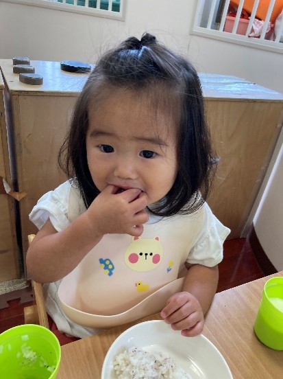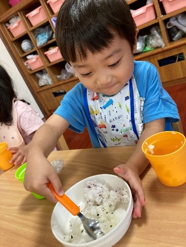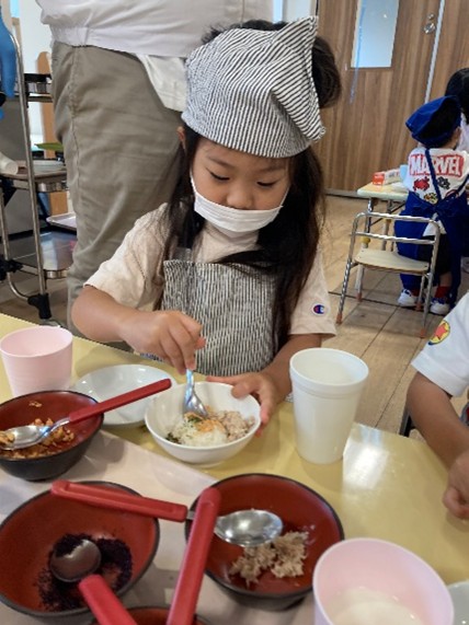 3・4・5歳クラスは好きな具材を自分たちで選んでご飯に混ぜてもらいました。