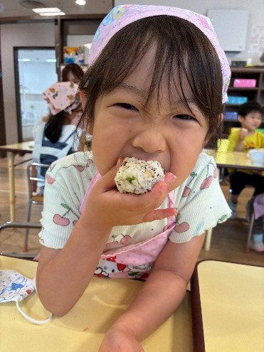食育で1~5歳児のみんなと一緒におにぎり作りを行いました。