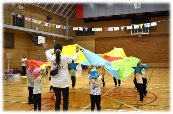 【3,4歳児競技「みんなヒーロー★ダンシングパラバルーン」】