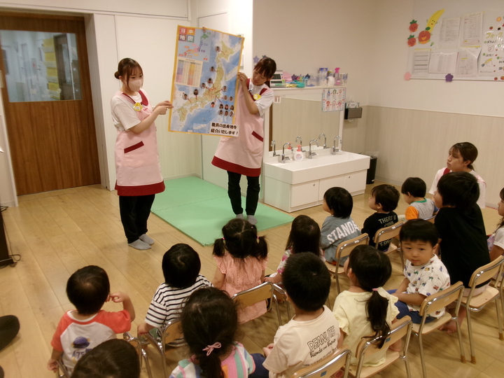 子どもたちに県の魅力を伝えています
