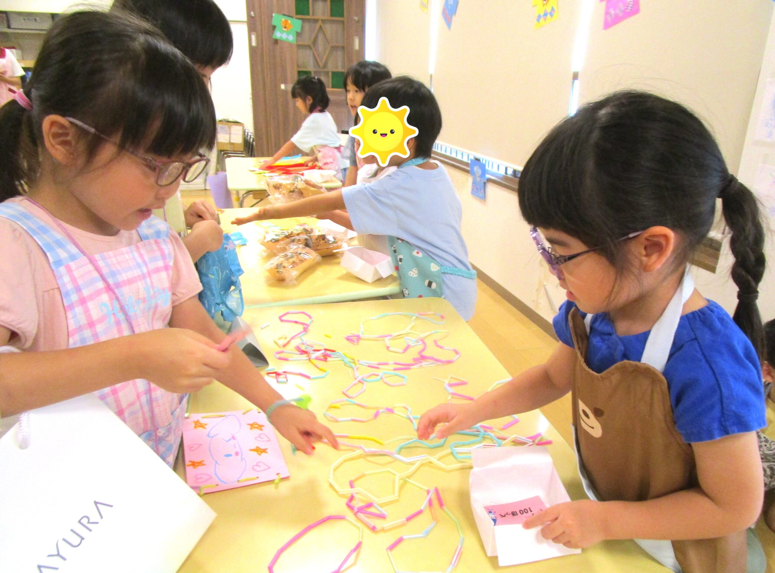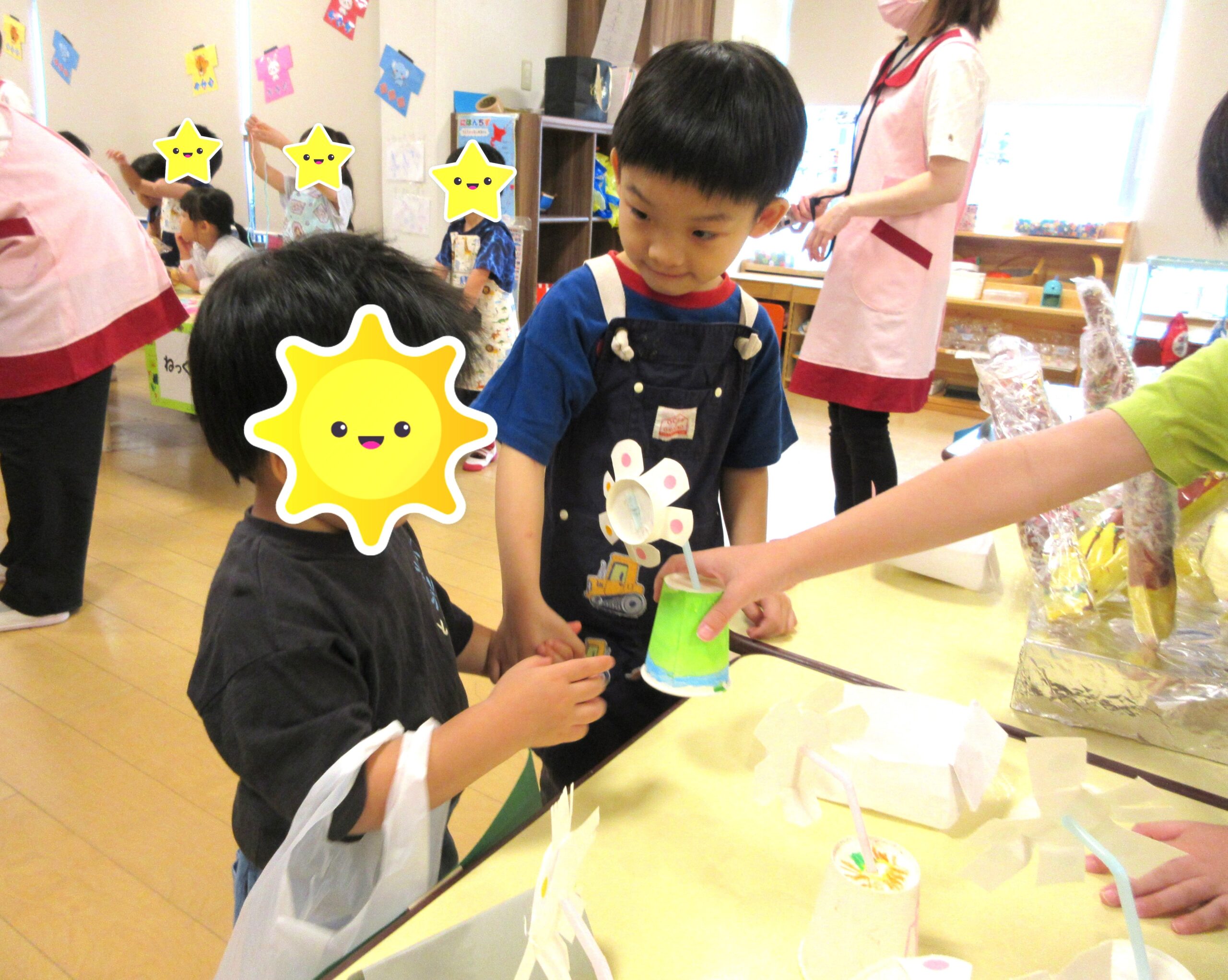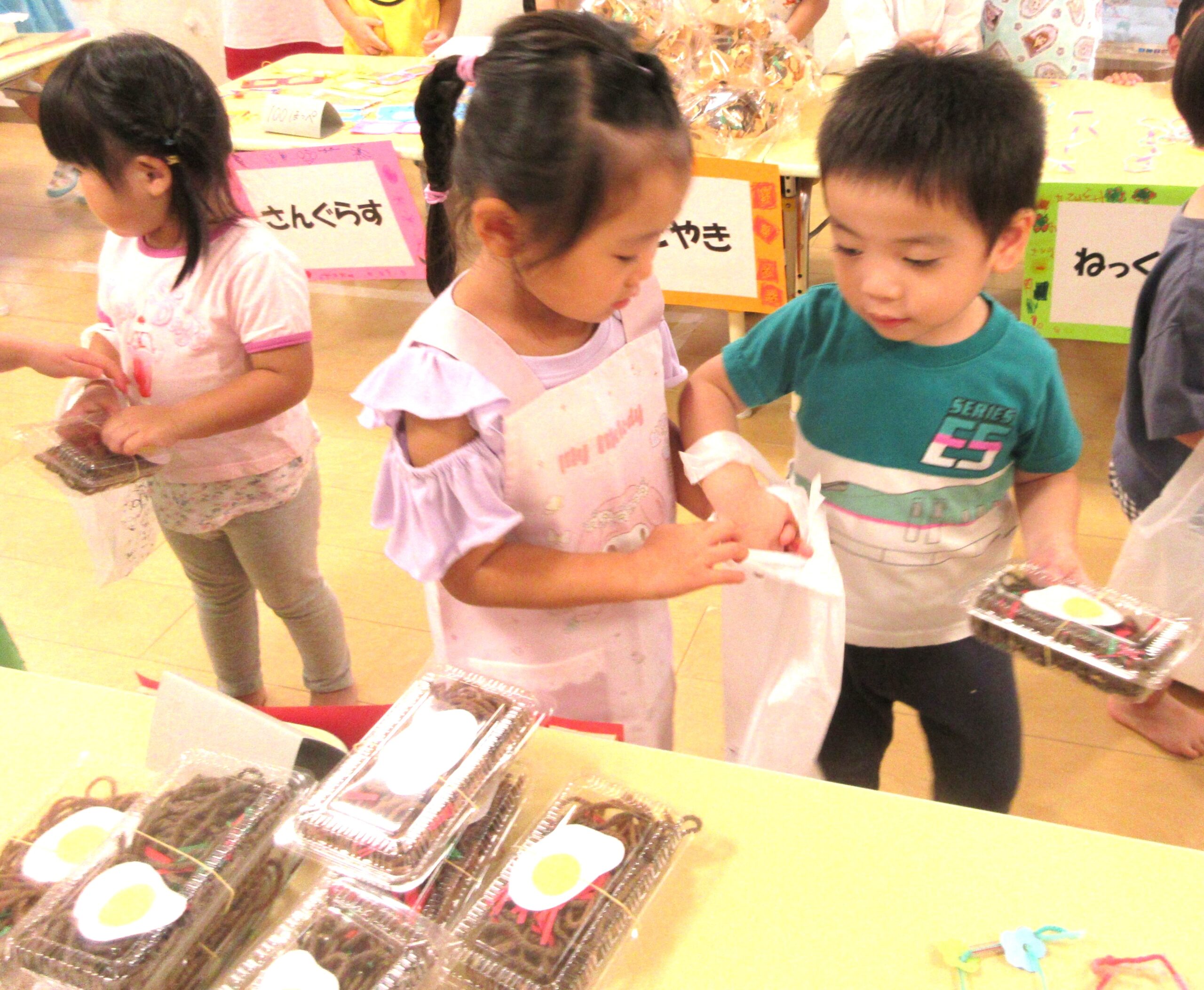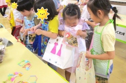 幼児クラスでは店員さんとお客さんを交代で行い、皆でお買い物を楽しみました。カッコイイサングラスはとても人気でした。