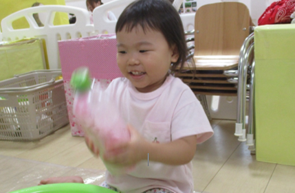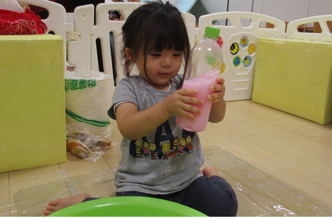 一歳児クラスで色水遊びを取り入れてみました