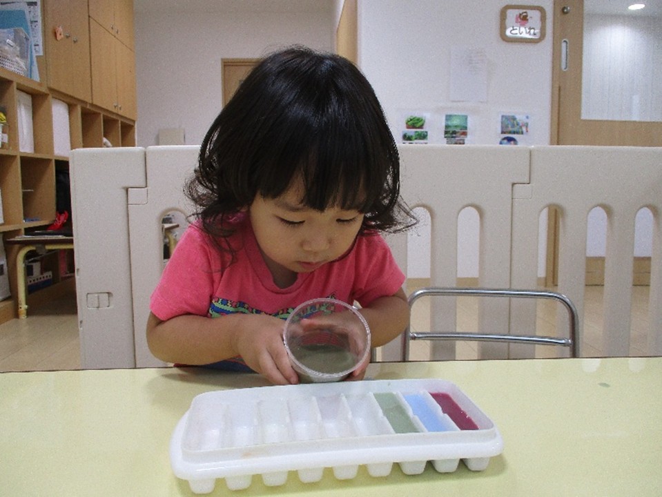 氷が溶けてくると「〇〇色になった」と気づきを発言したり、