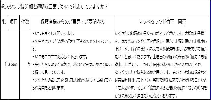回答に記載しております通り、保護者様にも笑顔でいて頂きたい。職員一同の思いです。