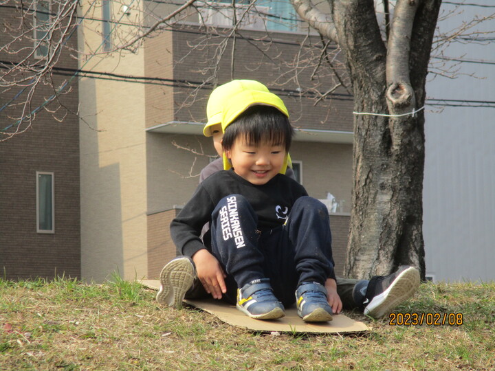 滑り終わって「楽しかったー!」が感じ入られる満足した表情に保育士も自然と笑顔になります。