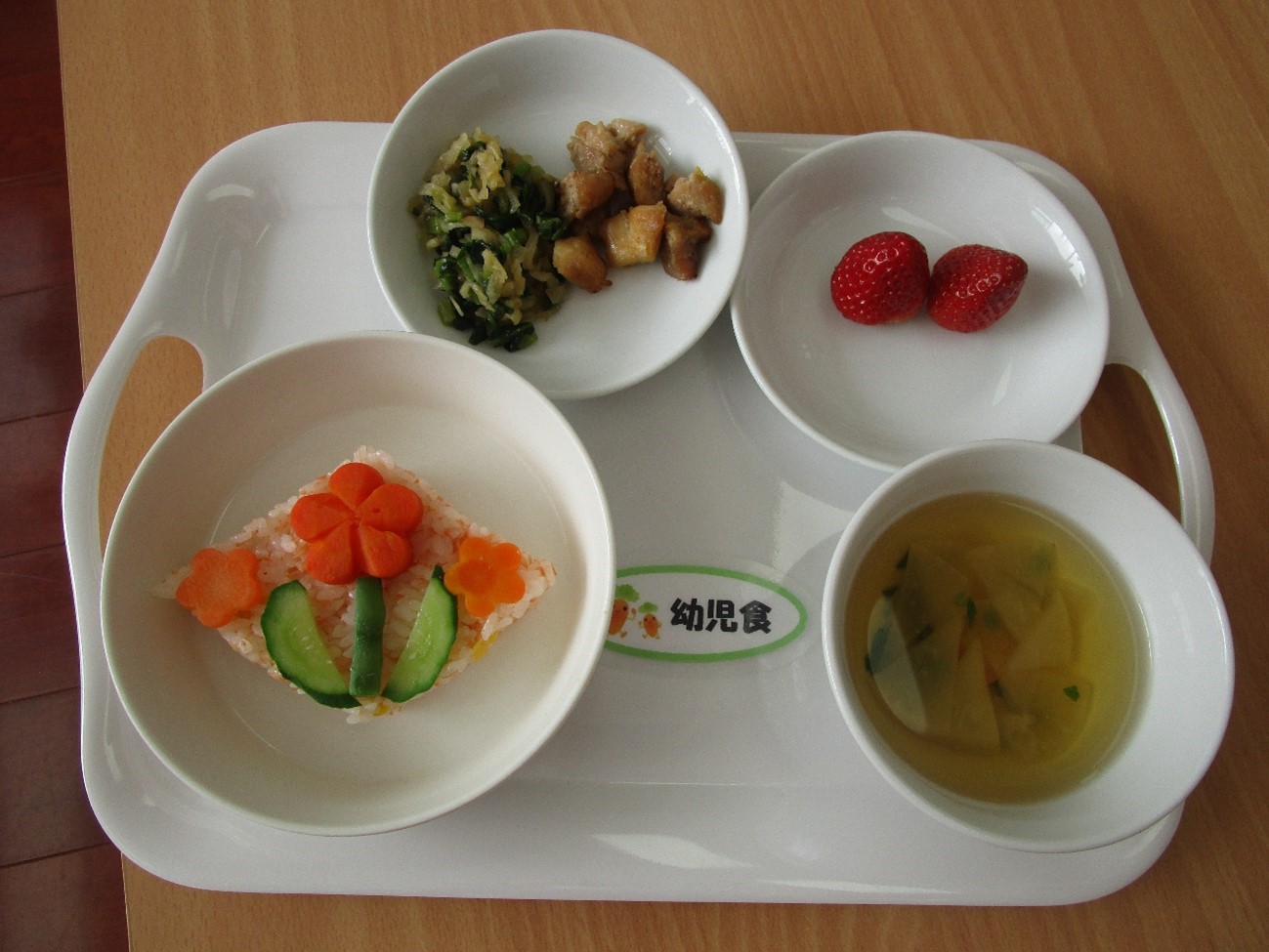 お誕生日会&ひなまつり♪ ~食育:お花寿司の飾りつけ~