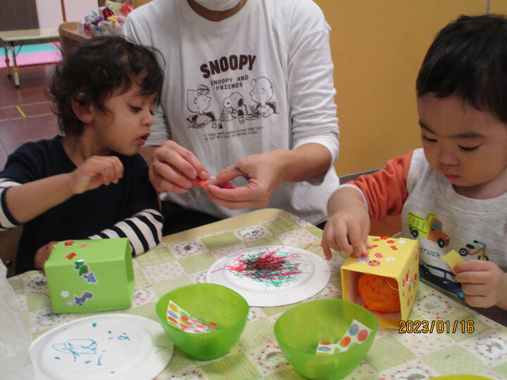 ほっぺるだより Letter TOP ほっぺるだより むかしあそびを手作りで ほっぺるランド 滝野川 むかしあそびを手作りで 前回はおもちつきごっこを紹介。 今回はたこあげや、けん玉、かるたなどを楽しむ様子の紹介です。 まずは、作るところから 真剣な表情ですよね。 「出来上がりで遊ぶ子どもたち」 けん玉遊びでは、玉と一緒に跳ね上がり、 かるたは、さがして見つけた満足感、 おもち重ねはぐらぐらにドキドキ。 「さあ!! 待ちに待ったたこあげへ」 風邪の冷たい中でしたが、元気にたこをあげて走る子どもたち、 楽しく遊ぶことができました!! ほっぺるだより Letter ほっぺるランド 滝野川 大盛況! 「夏祭りIN 滝野川」 ほっぺるランド 滝野川 2023年 「お正月遊び」 ほっぺるランド 滝野川 毎日が新発見!