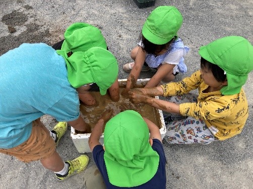 田植えの前日に、子ども達と厨房スタッフ一緒に土壌作りをしました。