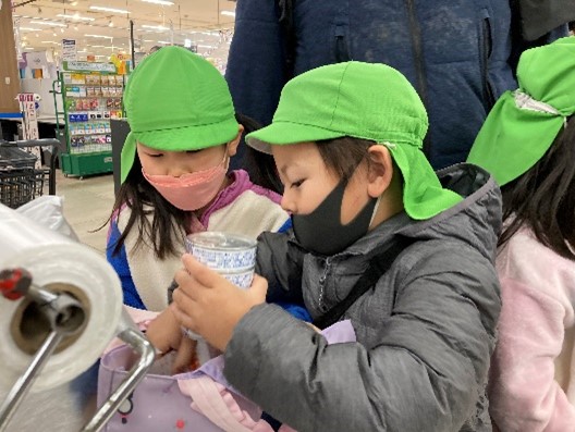 子ども達は、それぞれ分担して近くのスーパーに買い物にでかけ、目的の品物を見つけレジでお金を払いました。